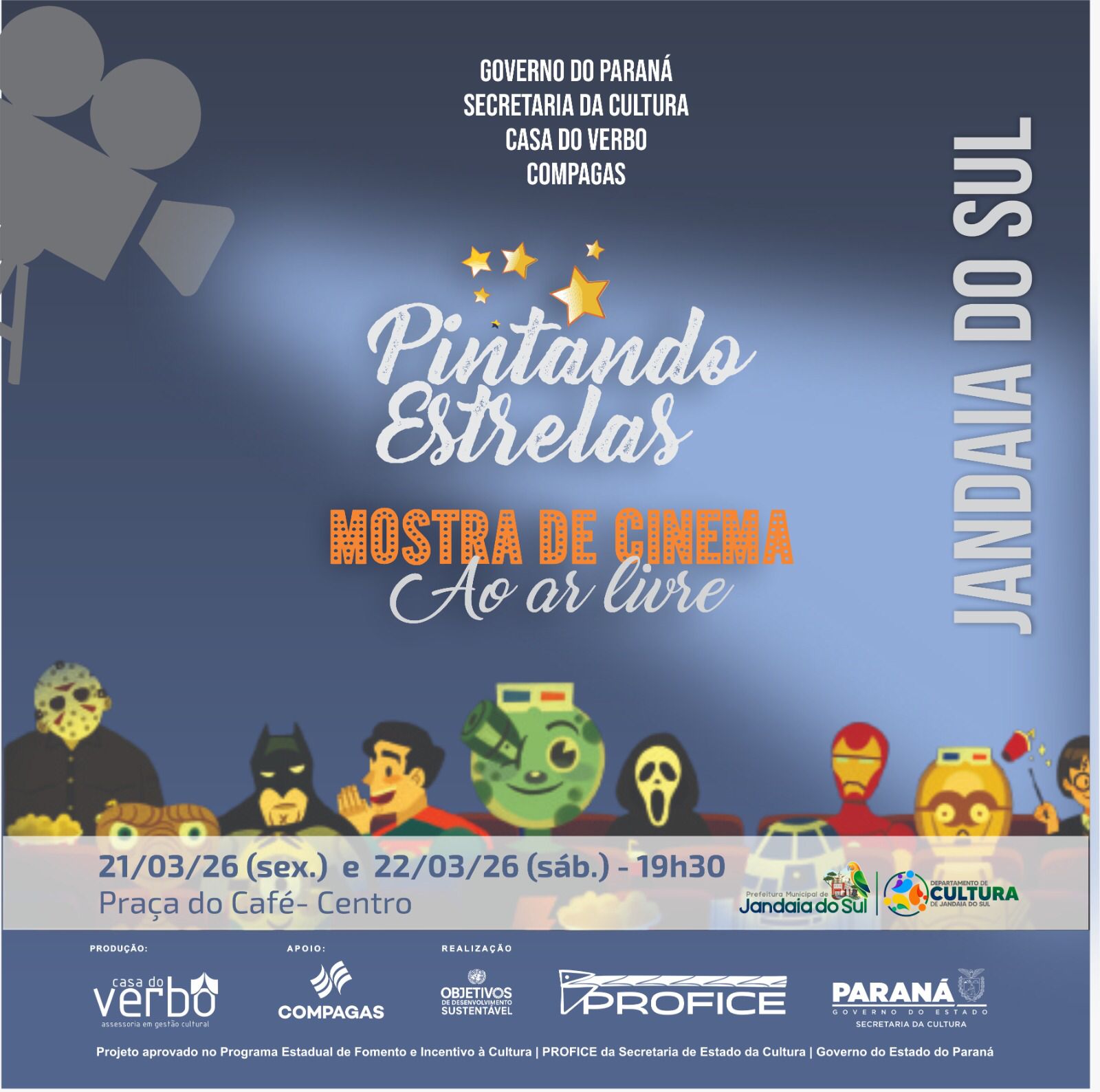 Jandaia do Sul recebe, nos dias 21 e 22 de março de 2026, a mostra Pintando Estrelas – Cinema ao Ar Livre, com sessões gratuitas às 19h30, na Praça do Café. O público pode votar e escolher os filmes pelo link:👉 https://casadoverbo.com.br/pintando-estrelas-2026/ 📅 21 e 22/03/2026📍 Praça do Café🎟 Entrada gratuita A iniciativa é realizada […]