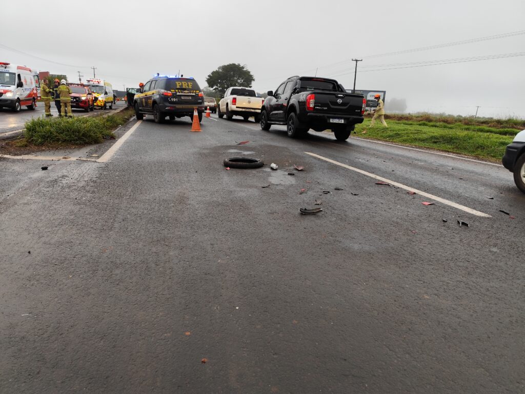 Segundo o Corpo de Bombeiros de Apucarana, que também se deslocou até o local, os primeiros relatos indicavam o envolvimento de dois veículos e um caminhão, mas ao chegarem constataram que foram quatro automóveis e uma motocicleta os envolvidos.