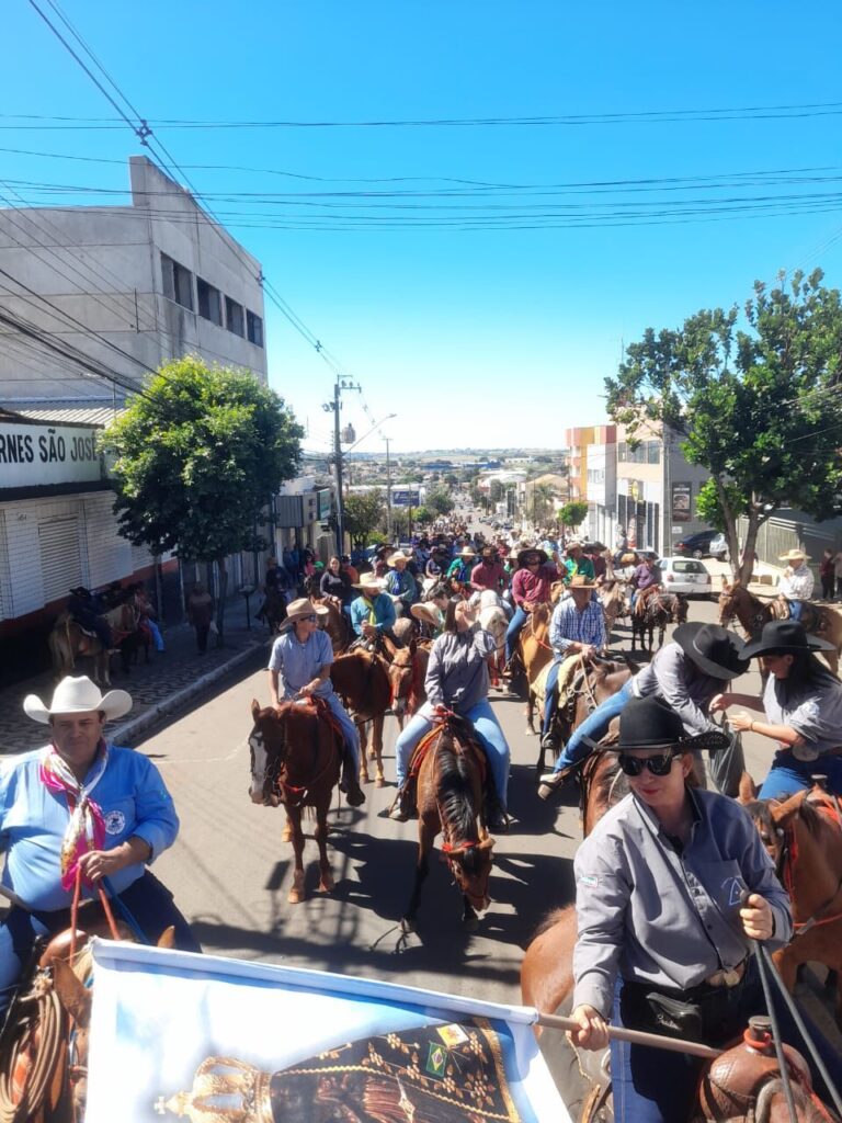 Com a presença de diversas comitivas e grupos vindos de várias cidades da região, a cavalgada percorreu as estradas rurais e finalizou na Estação Ferroviária; local que também marcou o ponto de partida e que ficou pequeno diante da multidão que acompanhou o evento.