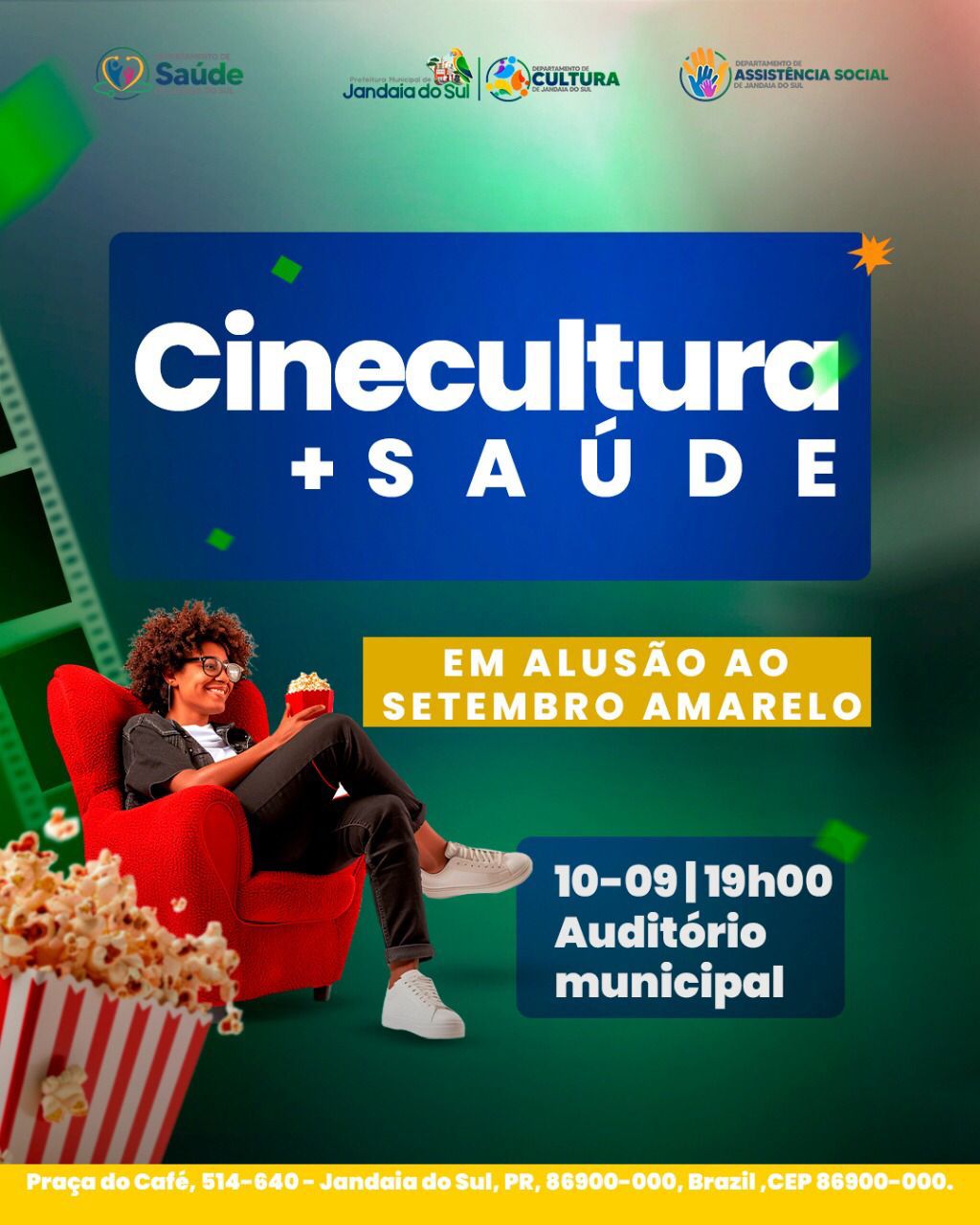 Hoje, 10 de setembro, a Prefeitura de Jandaia do Sul através do departamento de Cultura e Departamento de Saúde realizam o Cinecultura + Saúde, em alusão ao Setembro Amarelo, campanha de valorização da vida e prevenção ao suicídio. O evento acontece às 19h, no Auditório Municipal.