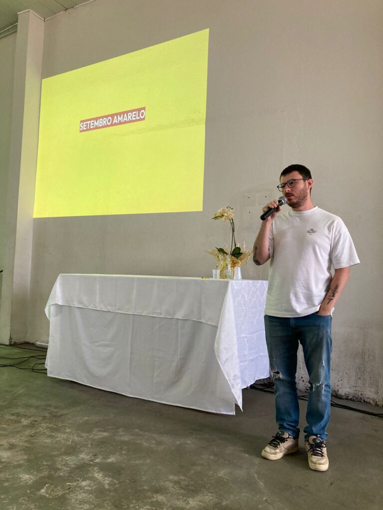 A Prefeitura Municipal, por meio do Departamento de Saúde, promoveu na Indústria Missiato uma palestra alusiva ao Setembro Amarelo, ministrada pelo Psicólogo Coordenador de Saúde Mental Wesley Vinícius da Silva.