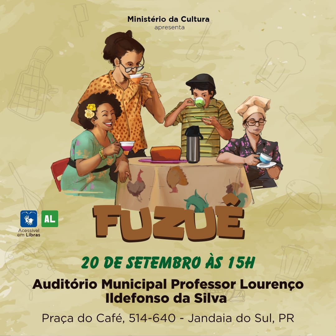A Prefeitura Municipal de Jandaia do Sul, por meio do Departamento de Cultura e com apoio da Câmara de Vereadores, traz ao município o espetáculo teatral “Fuzuê”, da Forféu Atividades Artísticas. A peça será apresentada no dia 20 de setembro (sábado), às 15h, no Auditório Municipal Professor Lourenço Ildefonso da Silva, com entrada gratuita e classificação livre.