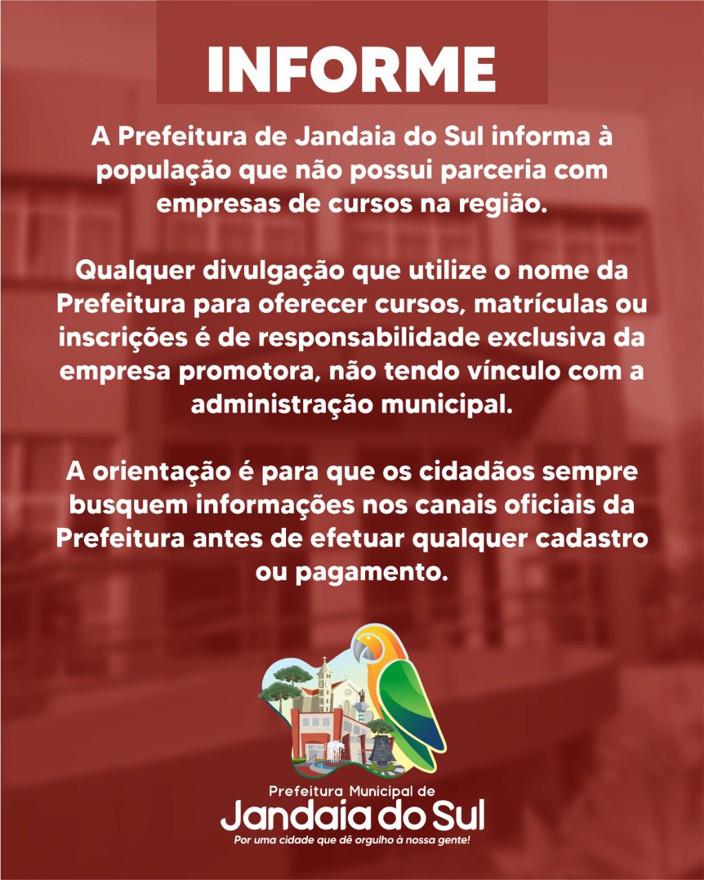 A Prefeitura de Jandaia do Sul informa à população que não possui parceria com empresas de cursos na região.