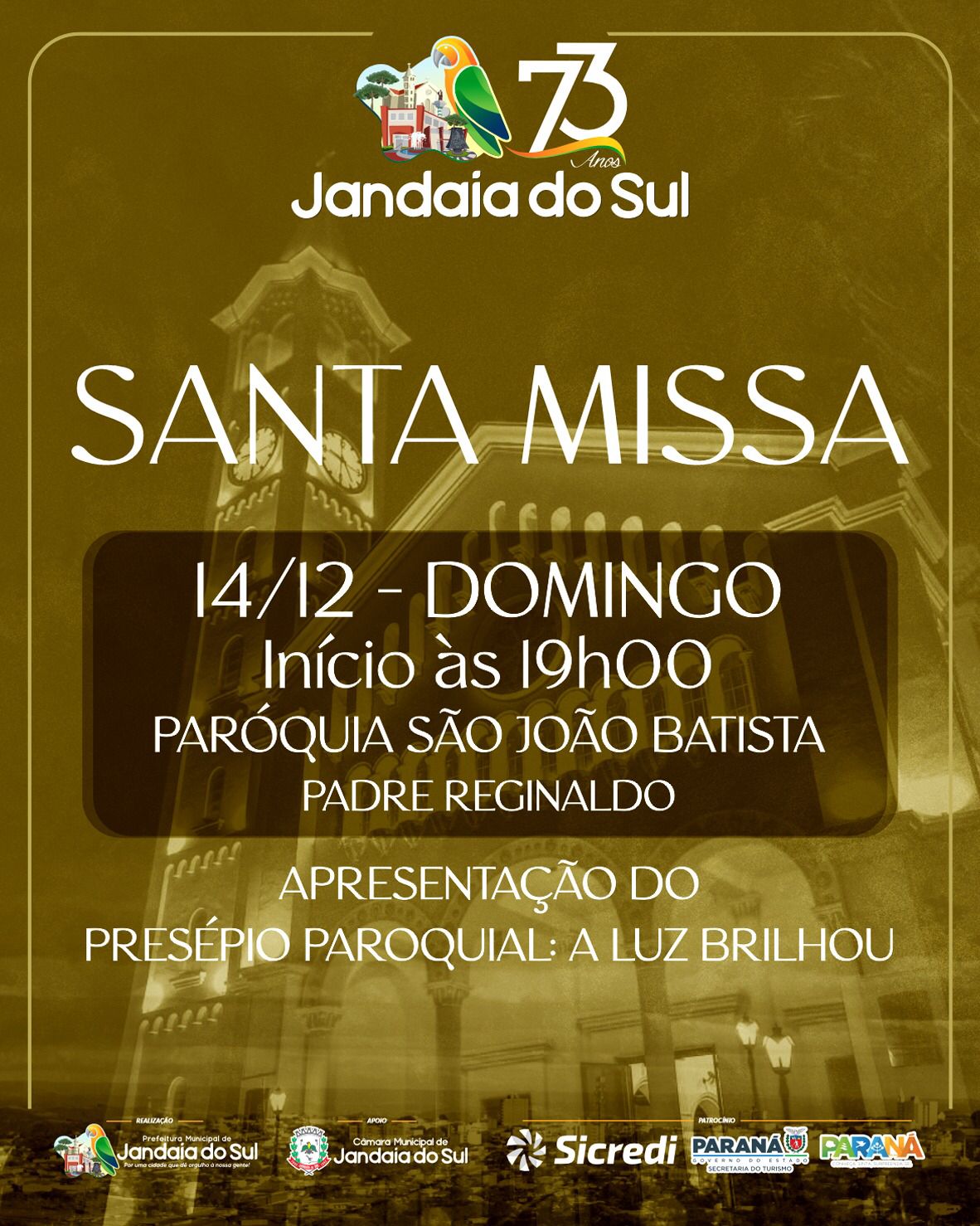 Jandaia do Sul celebra 73 anos com Missa em Ação de Graças e apresentação especial do Presépio Paroquial