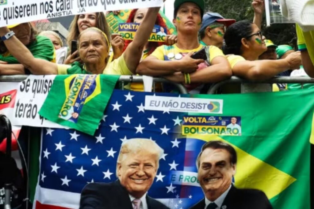 Uma enorme bandeira norte-americana foi estendida na avenida, enquanto cartazes exaltavam o ex-presidente dos EUA: “Donald Trump, thank you very much” e “SOS Trump, Bolsonaro Free”. Outros ataques foram direcionados ao ministro Alexandre de Moraes, do Supremo Tribunal Federal (STF), com dizeres como “Fora Moraes” e “ditador”.