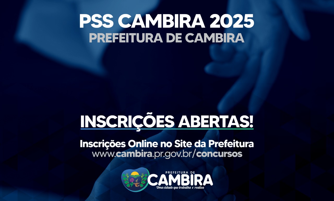 Mais informações e o edital completo estarão disponíveis no portal da Prefeitura durante o período de inscrição. www.cambira.pr.gov.br/concursos