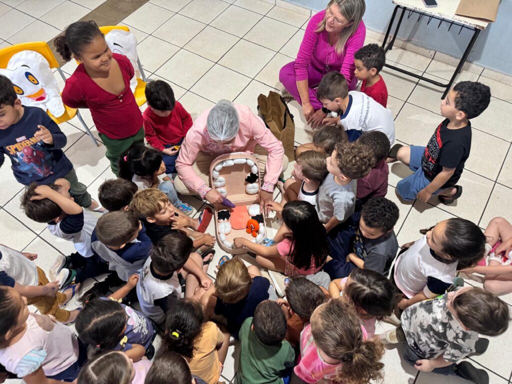 Foram realizadas orientações sobre higiene bucal nas escolas, atividades educativas e lúdicas, levantamento epidemiológico das condições bucais de crianças, palestras sobre saúde bucal na infância e distribuição de kits de higiene. Também ocorreram 73 atendimentos odontológicos em horários estendidos e aos sábados, ampliando o acesso da população aos serviços públicos.