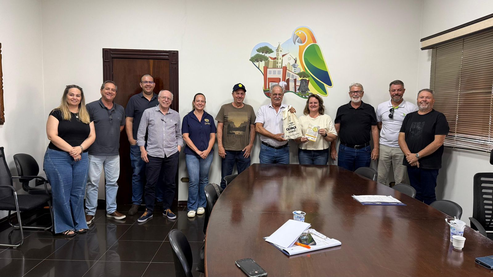 Na tarde desta sexta-feira, 28 de novembro, a Prefeitura de Jandaia do Sul realizou, no gabinete do prefeito, uma reunião de alinhamento para avançar na organização do Festival da Cachaça 2026. Participaram do encontro o prefeito Ditão Pupio, o vice-prefeito Inei Heckert, a comissão organizadora do festival e equipes de departamentos municipais envolvidas na preparação do evento.